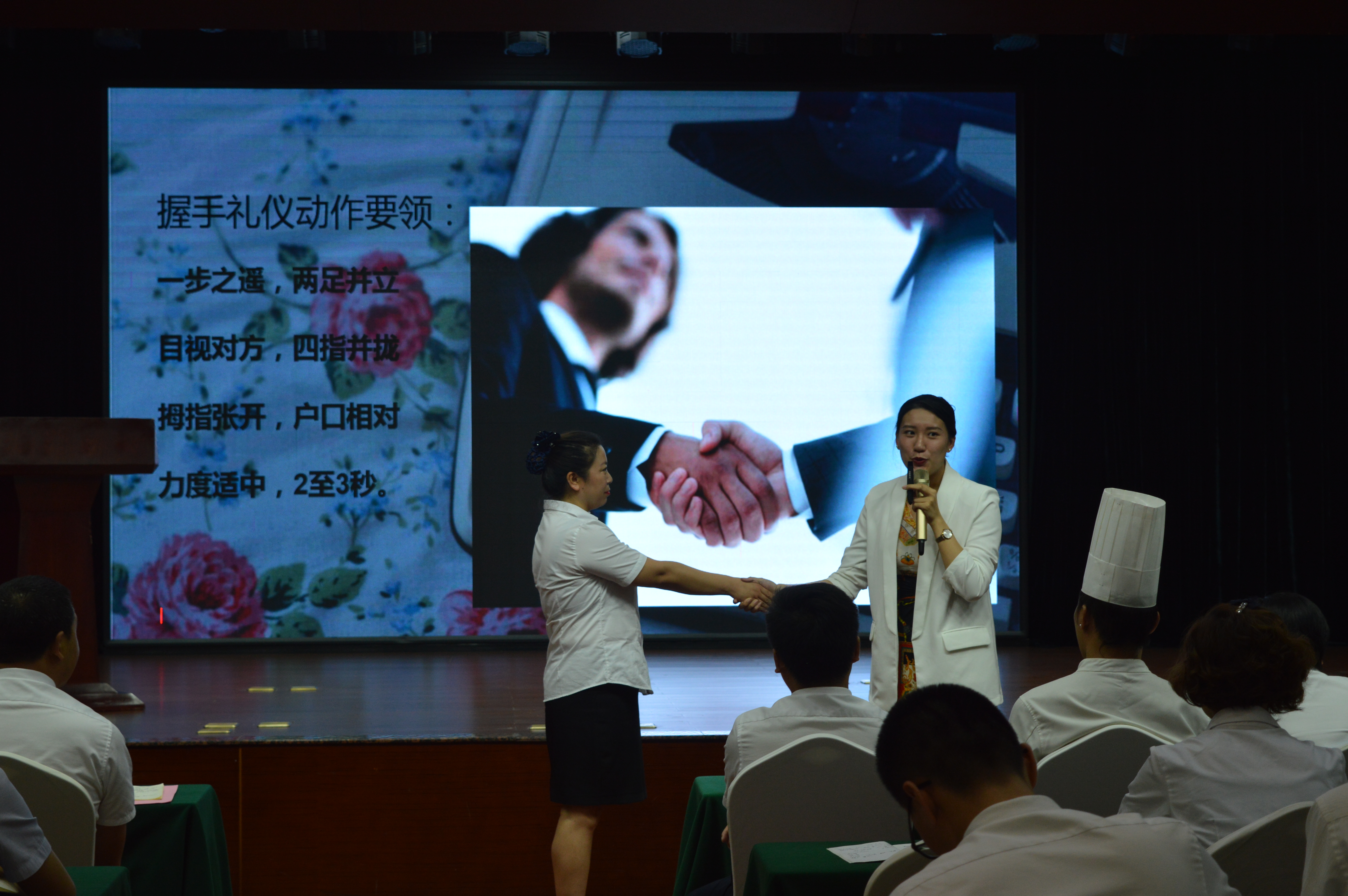 嘉賓曹老師為大家進行了精彩而生動的服務(wù)禮儀培訓(xùn),曹老師從日常的儀表、站姿、坐姿、行走、擁抱、握手、鞠躬等禮儀規(guī)范方面,邀請現(xiàn)場員工互動參與并示范講解,另外通過案例與影片分享,闡釋了服務(wù)美學(xué)的重要意義,以及如何從基本的服務(wù)到滿意的服務(wù)再到感動的服務(wù)?,F(xiàn)場教學(xué)氛圍活躍,精彩處引發(fā)陣陣掌聲。