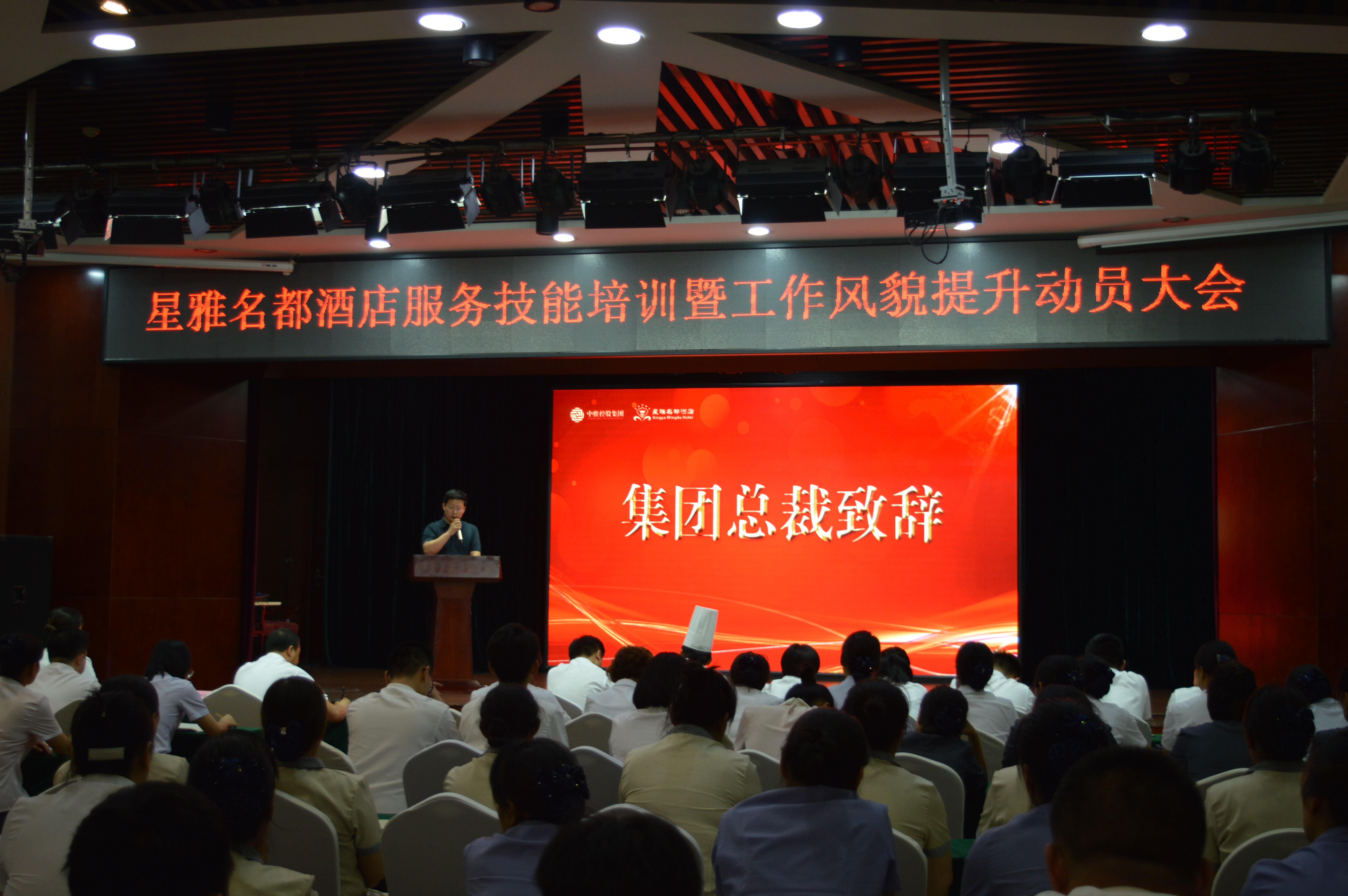 為積極響應(yīng)集團公司“解放思想、改革創(chuàng)新”總體動員令,持續(xù)提升酒店服務(wù)品質(zhì),強化員工紀(jì)律作風(fēng),2020年8月3日下午,由集團綜合部組織,星雅酒店員工參與,召開了“服務(wù)技能培訓(xùn)暨工作風(fēng)貌提升動員大會”,集團總裁郭雅磊先生出席本次大會并做重要講話。