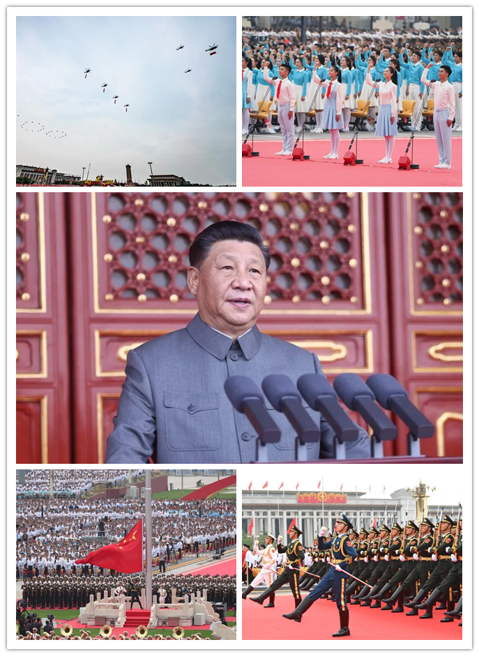 8時(shí)整,大會(huì)開(kāi)始。戰(zhàn)鷹飛過(guò)天安門廣場(chǎng),最美的祝福送給黨!國(guó)旗護(hù)衛(wèi)隊(duì)器宇軒昂、步伐堅(jiān)定,從人民英雄紀(jì)念碑到國(guó)旗桿220米的距離,由齊步、正步、齊步各100步完成;這條路不長(zhǎng)、剛好走了100步,這條路很長(zhǎng)、足足走了100年!會(huì)場(chǎng)內(nèi)外萬(wàn)千中華兒女注目著五星紅旗冉冉升起,莊嚴(yán)的外表難掩內(nèi)心無(wú)比的激動(dòng)。緊接著,共青團(tuán)員和少先隊(duì)員代表們集體致獻(xiàn)詞,滿懷深情表達(dá)了對(duì)黨百年華誕的真摯祝福。接下來(lái),大會(huì)進(jìn)行最為重要的議程,習(xí)近平總書(shū)記發(fā)表重要講話!當(dāng)總書(shū)記講到“中國(guó)人民也絕不允許任何外來(lái)勢(shì)力欺負(fù)、壓迫、奴役我們,誰(shuí)妄想這樣干必將在14億多中國(guó)人民用血肉筑成的鋼鐵長(zhǎng)城面前碰的頭破血流”時(shí),集團(tuán)全體黨員心潮澎湃,會(huì)議室內(nèi)響起熱烈掌聲!