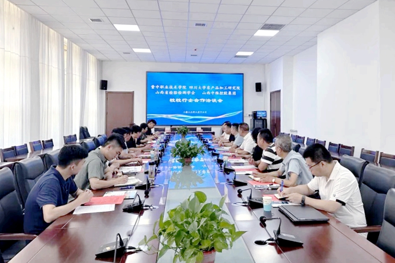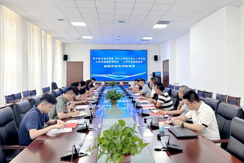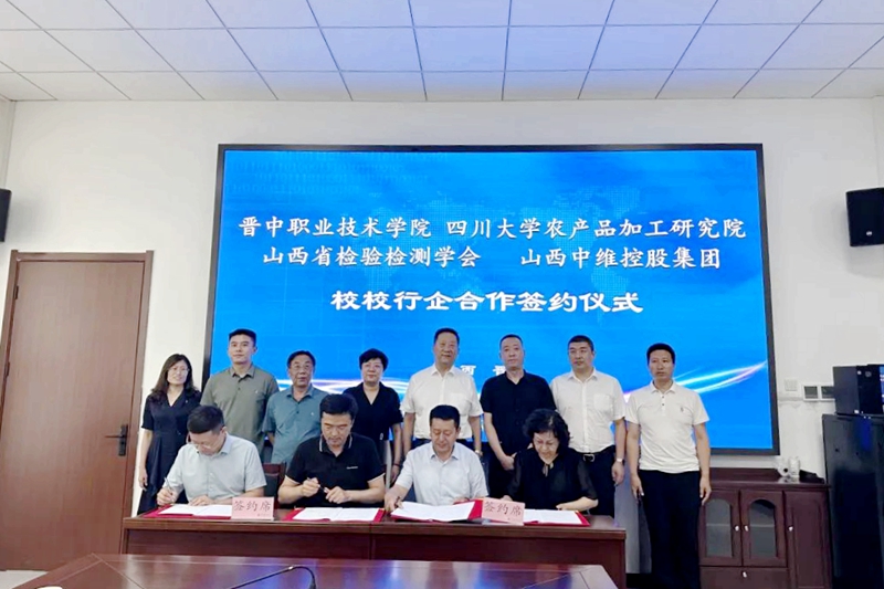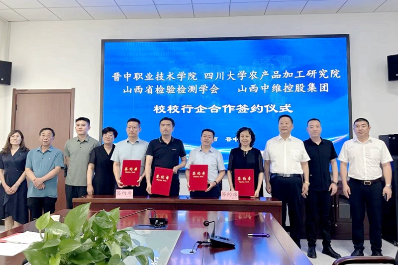 2023年8月18日,晉中職業(yè)技術(shù)學(xué)院、四川大學(xué)農(nóng)產(chǎn)品加工研究院、山西省檢驗(yàn)檢測學(xué)會、中維控股集團(tuán)“校校行企”合作洽談會議暨共建“食品產(chǎn)業(yè)學(xué)院”合作簽約儀式在晉中職業(yè)技術(shù)學(xué)院行政樓舉行。晉中職業(yè)技術(shù)學(xué)院院長雒衛(wèi)廷、四川大學(xué)農(nóng)產(chǎn)品加工研究院常務(wù)副院長趙志峰、山西省檢驗(yàn)檢測學(xué)會副會長張紅、中維控股集團(tuán)董事長郭秀忠等領(lǐng)導(dǎo)出席,與會的還有各單位相關(guān)負(fù)責(zé)同志。
